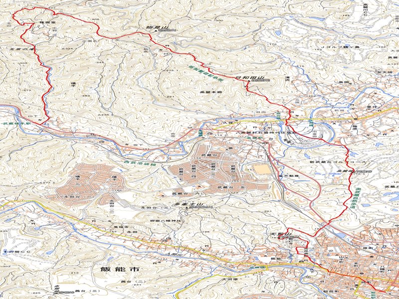 天覧山中段8:55→天覧山9:05→高麗峠9:45→ドレミファ橋10:10→