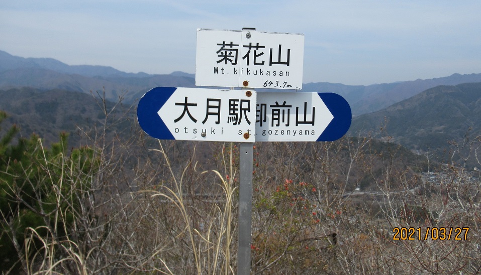 コース:猿橋駅 9:25集合 9:40出発 → 神楽山 9:50 → 御前山 11:20 → 菊花山 13:20 →