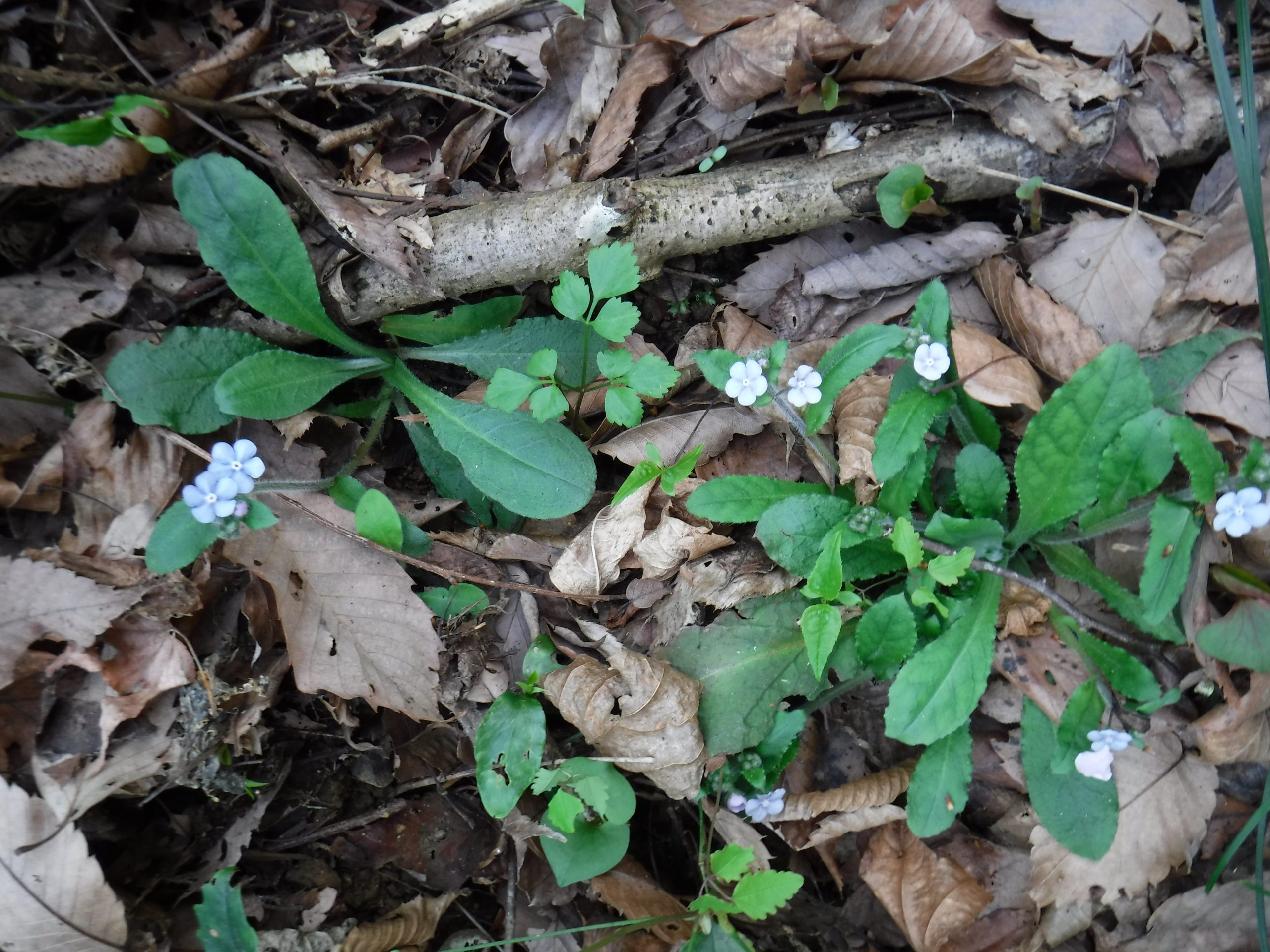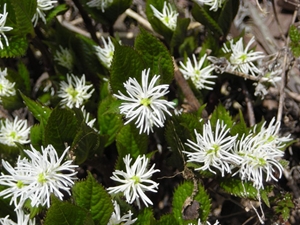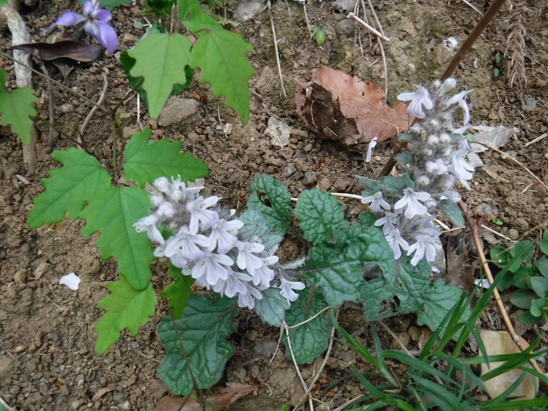 クサイチゴの花、ヒトリシズカ「愛にこたえて、隠された美」、濃い紫のスミレ「貞節、愛」