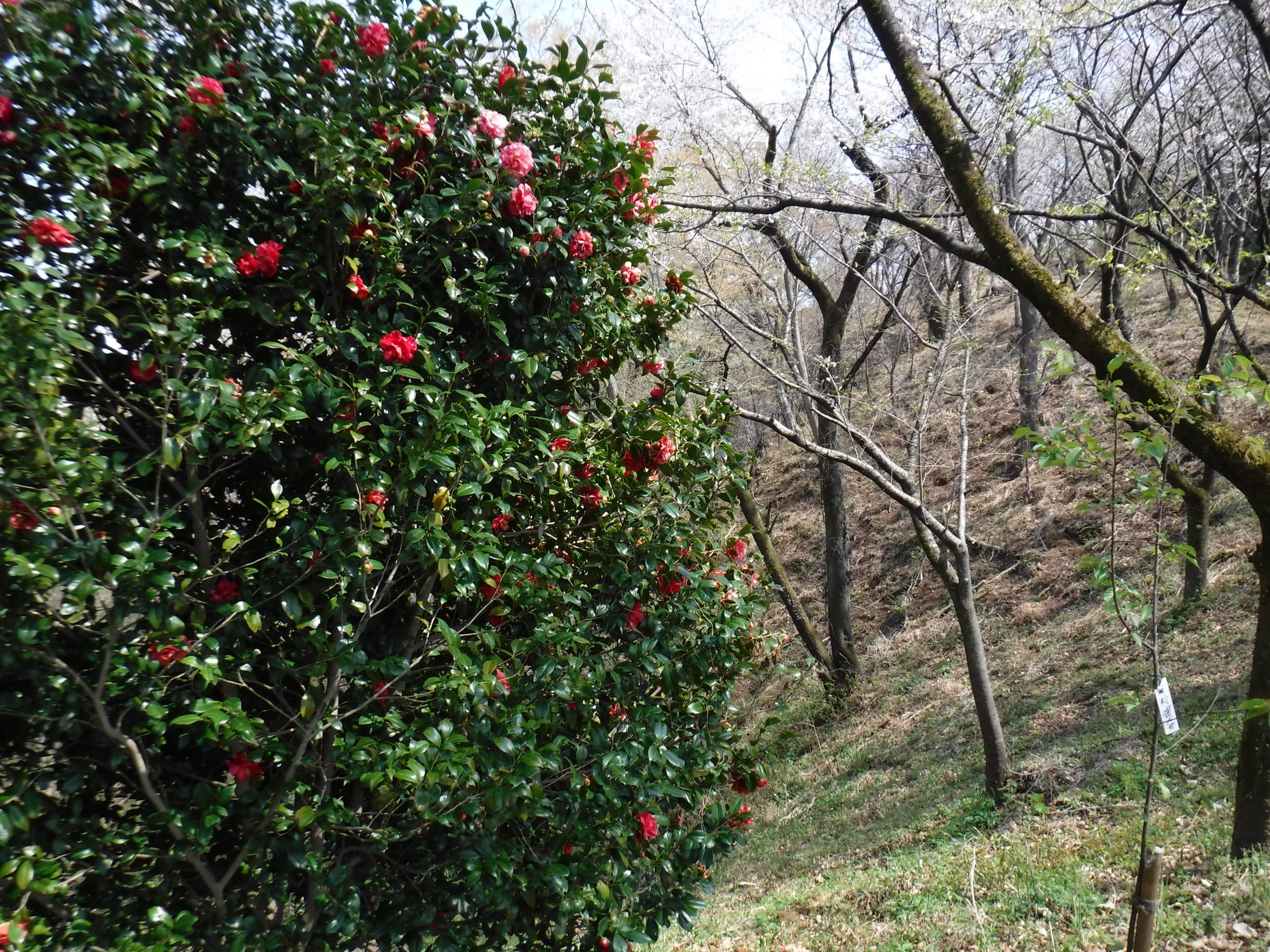 椿、桜、タチツボスミレ、春を満喫、歌を歌いながら歩きたい気分、ルンルン♩♫♪(^^♪