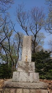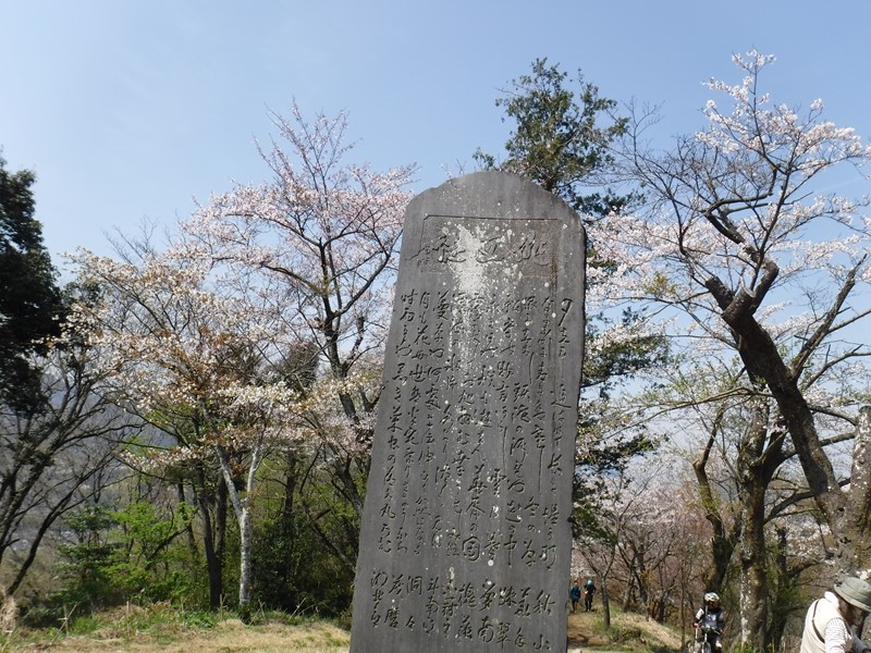 鳶尾山への最後の上り、日本で最初の一等三角点有、俳句十句を彫った大きな句碑
