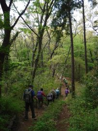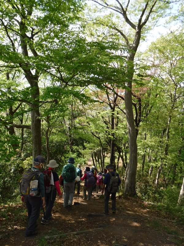 新緑あふれる山道に入ると、コナラやクヌギの広葉樹が綺麗!!