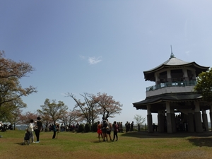 多くのハイカーで賑わう弘法山(235m) 今年は桜開花が早く、ちょっと残念