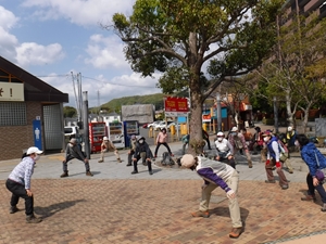 再会を喜ぶ、加藤リーダーの復帰への意気込み、休憩中も体操