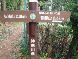 歩行開始9:55→吾妻山10:25→弘法山11:40(昼食)12:30→