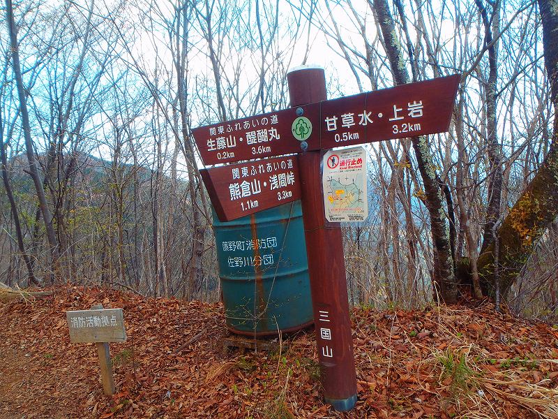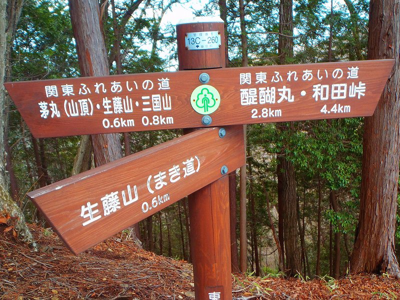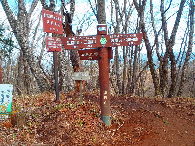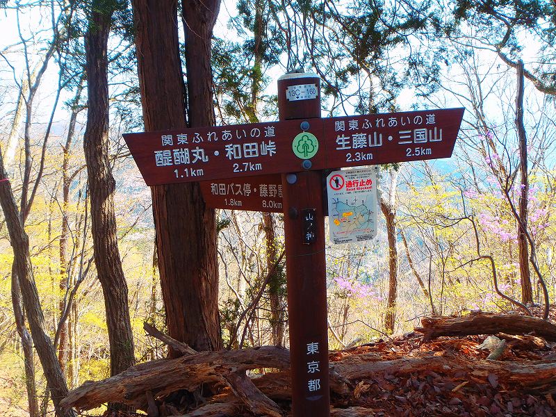 上野原8時32分発井戸行—-井戸9:10歩開—軍刀利神社奥ノ院10:00—-三国山11:30(昼食)12:00—-生藤山12:07—-連行山13:00—-山ノ神13:40—-和田バス停14:35着 バス14:51発=藤野駅 所要 5時間25分