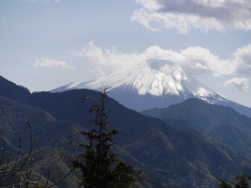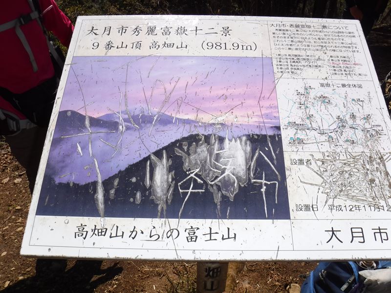 高畑山山頂、981.9m、富士山展望(雲から頭を出してくれました)
