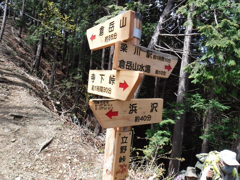 歩行開始8:50→登山口9:15→水場10:50→立野峠11:15→