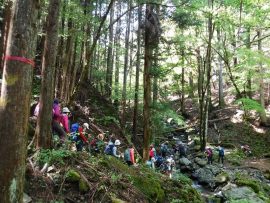 前日の雨で沢の水が増水、せせらぎの音を聞きながら、