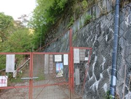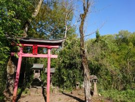 高畑山への登山道入り口、鹿よけ柵を閉めて、山の神神社に挨拶「有難うございました」