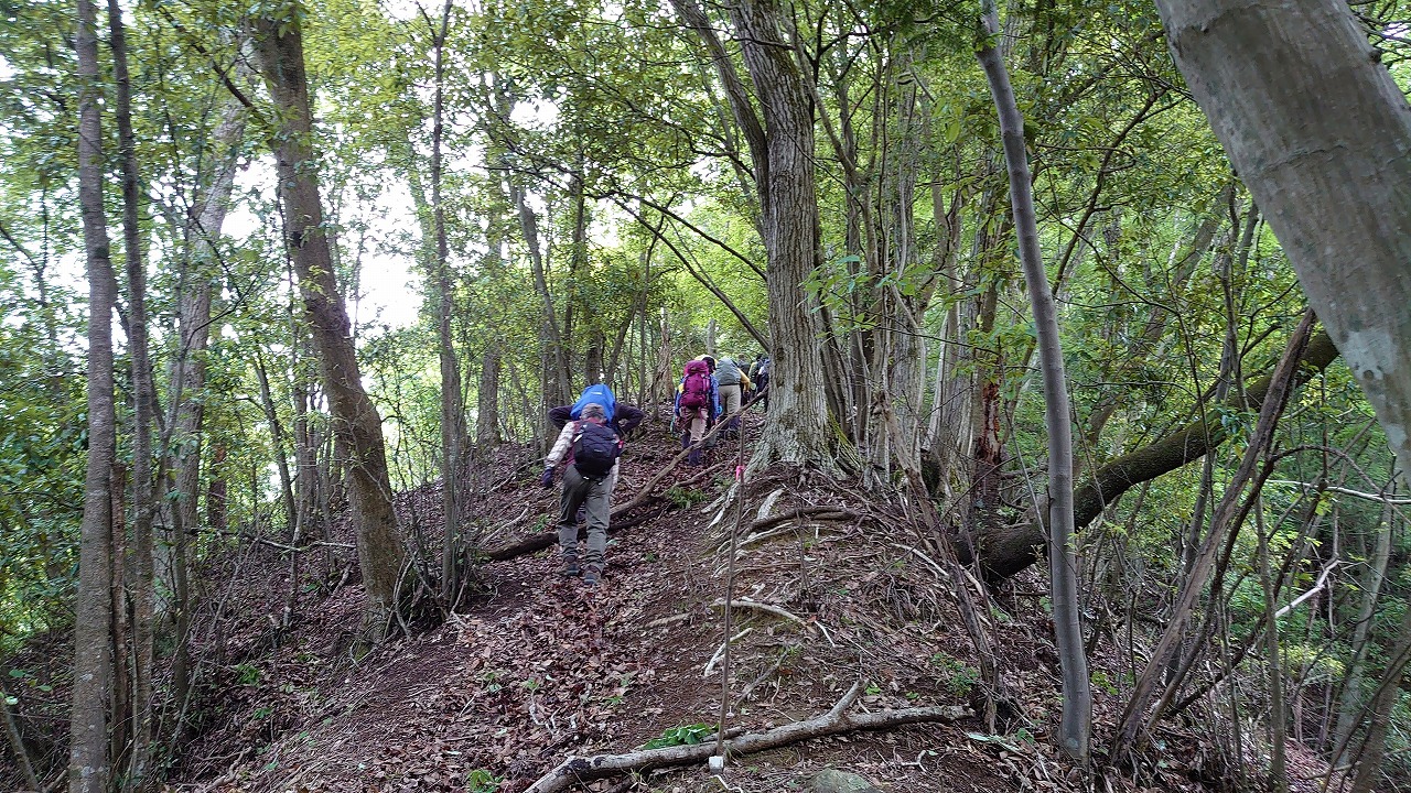 時折薄日が見られ雨の心配なく歩けた。急坂のバリエーションは前日の雨が足場を悪くし余計な力を必要とした。一人のハイカーにも会わず静かな山行を楽しむ。甚ノ函山までの急登に皆さん頑張りました。