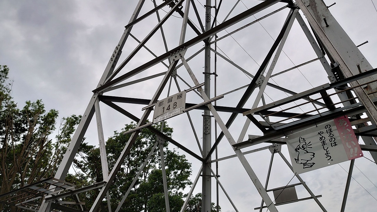 「神野下村」バス停から戻り「鎌倉街道」の看板から取りつく。 留線「148番鉄塔」