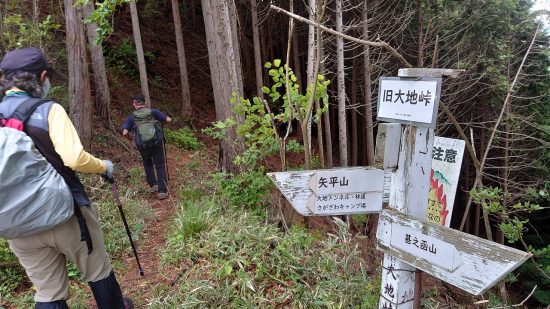 「旧大地峠」。やっと急登から開放され平坦な地へ。