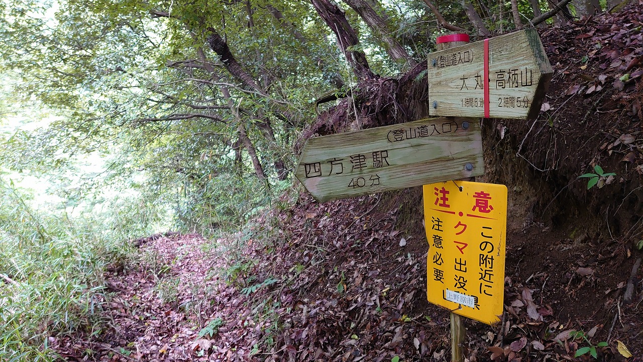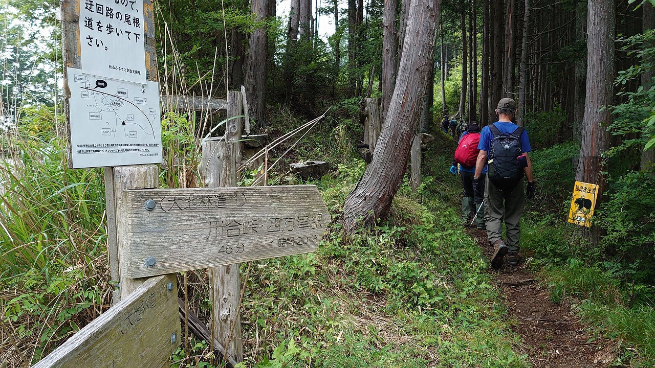 「川合峠 四方津駅」標識に従い進む。あと80分。「クマに注意」が気になる。