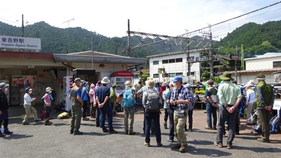 東吾野駅前でリーダー挨拶です(参加者多く、リーダーが写せません)