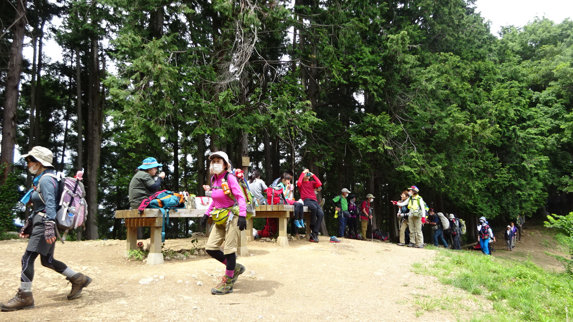 リーダーコメント:真夏を思わせる暑い中、橋本山・スカリ山・日和田山、三山は眺望がよく遠くの山々が