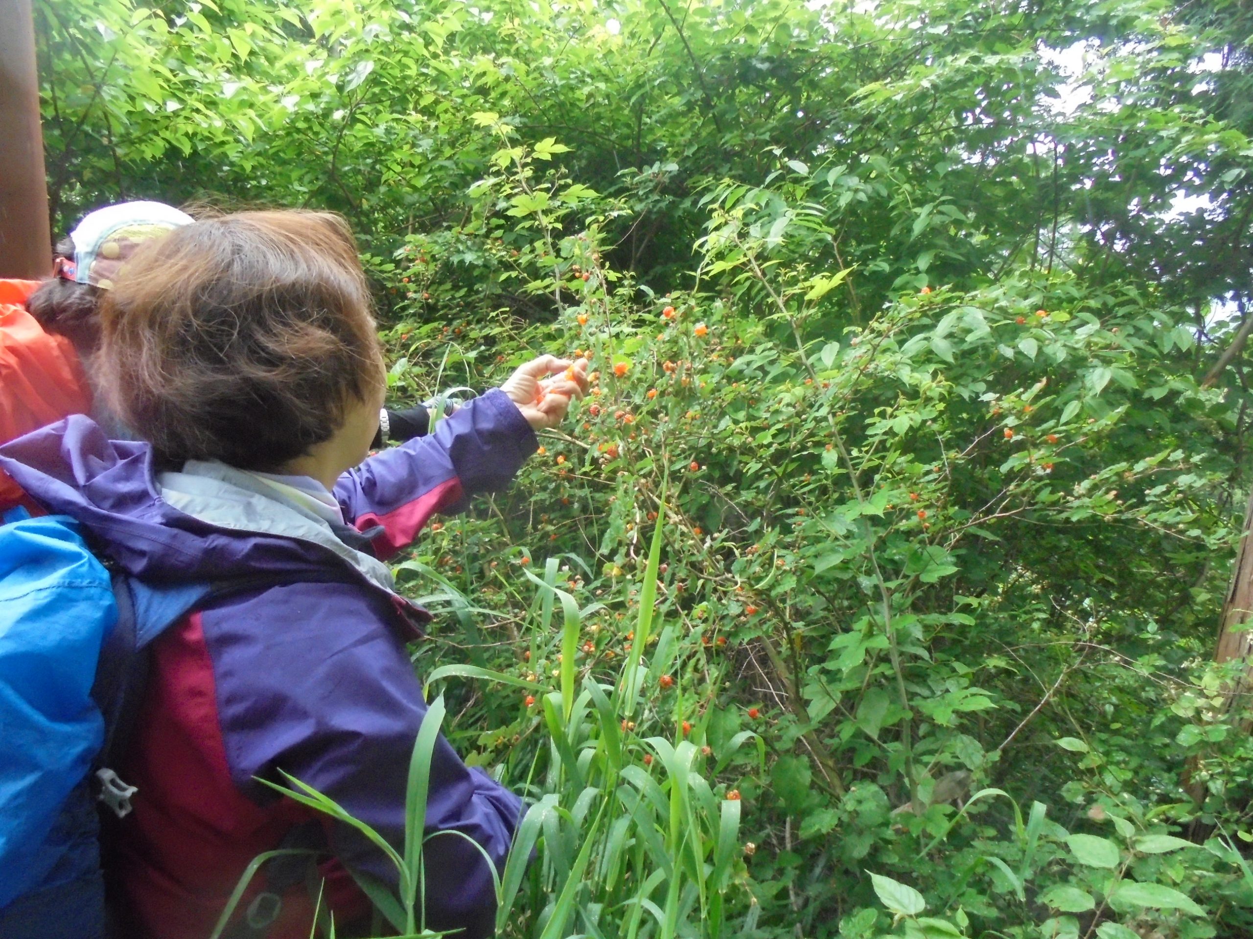 カッパを着用なしで山行が出来、さまざまな花を見つけたり、美味しそうな果実を試食した