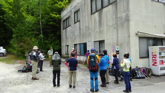 出発前リーダー挨拶(西沢渓谷バス停前)
