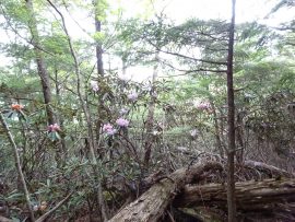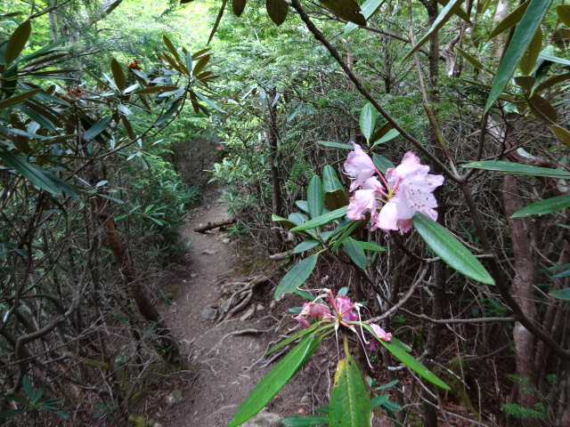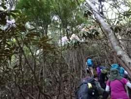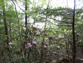 シャクナゲの花を期待していましたが、今年は暖かい日が続き開花が早まったみたいで花びらが落下していました。少し高度を上げるとわずかに残ったシャクナゲが咲いていました。木賊山を通過し、きつい急登を登りきり全員無事に甲武信小屋に着きました。翌朝日の出を見て山頂目指して、全員が登頂出来ました。小屋で休暇後前日登った段差あるコースを無事に下山出来ました。