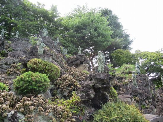 溶岩でできた築山には不動明王の眷属三十六童子が立ち並び、大迫力で見応えがあります。