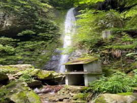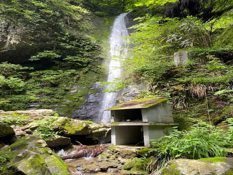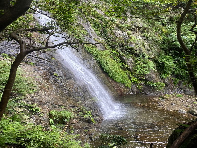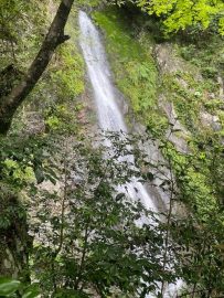 落差21mもある綾滝です。一筋の水流が岩肌をゆるやかなカーブを描きながら音もなく流れ落ちる様は、綾の織物を垂れ下げたかのごとく。このことから、綾滝と名付けられたようです。