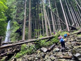 梅雨時の晴れ間なので、蒸し暑い一日でしたが、千足沢を登り、天狗滝、綾滝を巡り、涼しさを感じとることができました。
