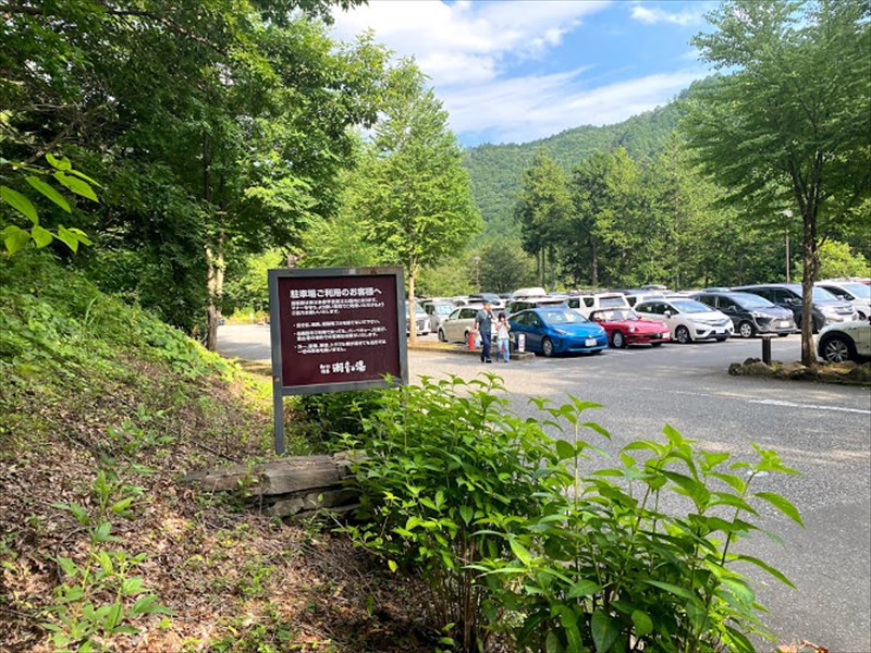瀬音の湯。梅雨空の間から、青い空も垣間見られる日になったので、たくさんの観光客が秋川渓谷を楽しんでいました。
