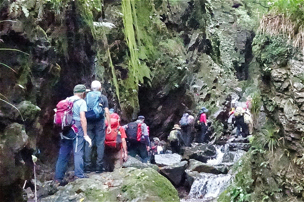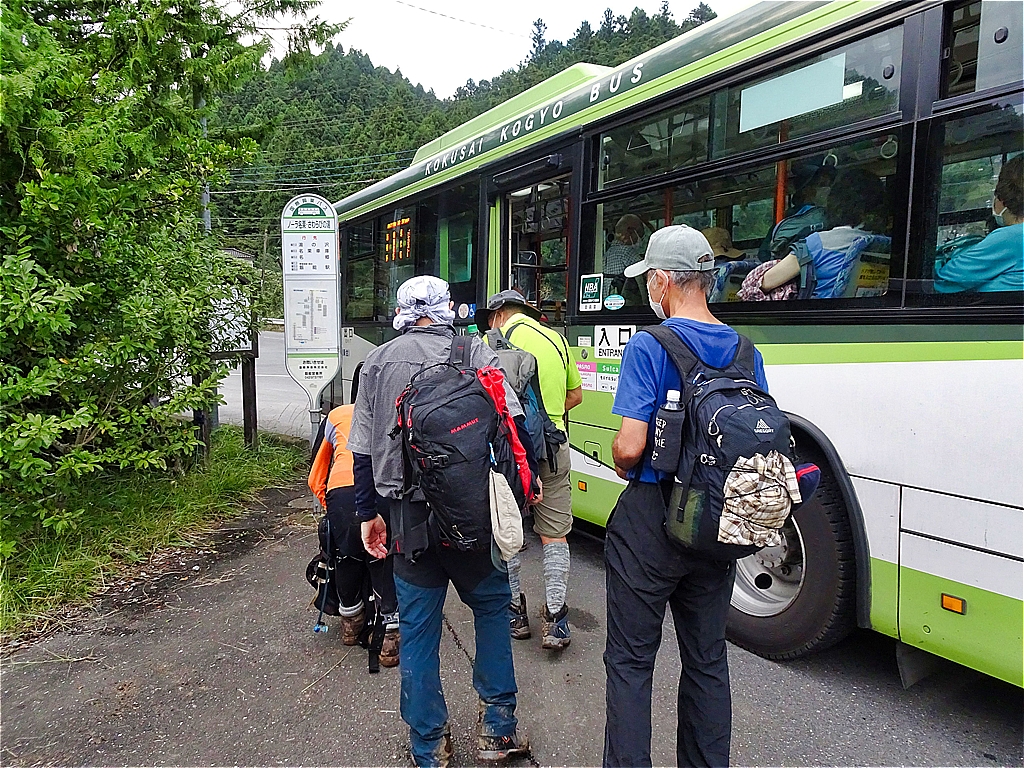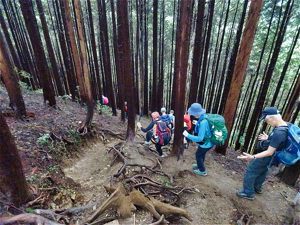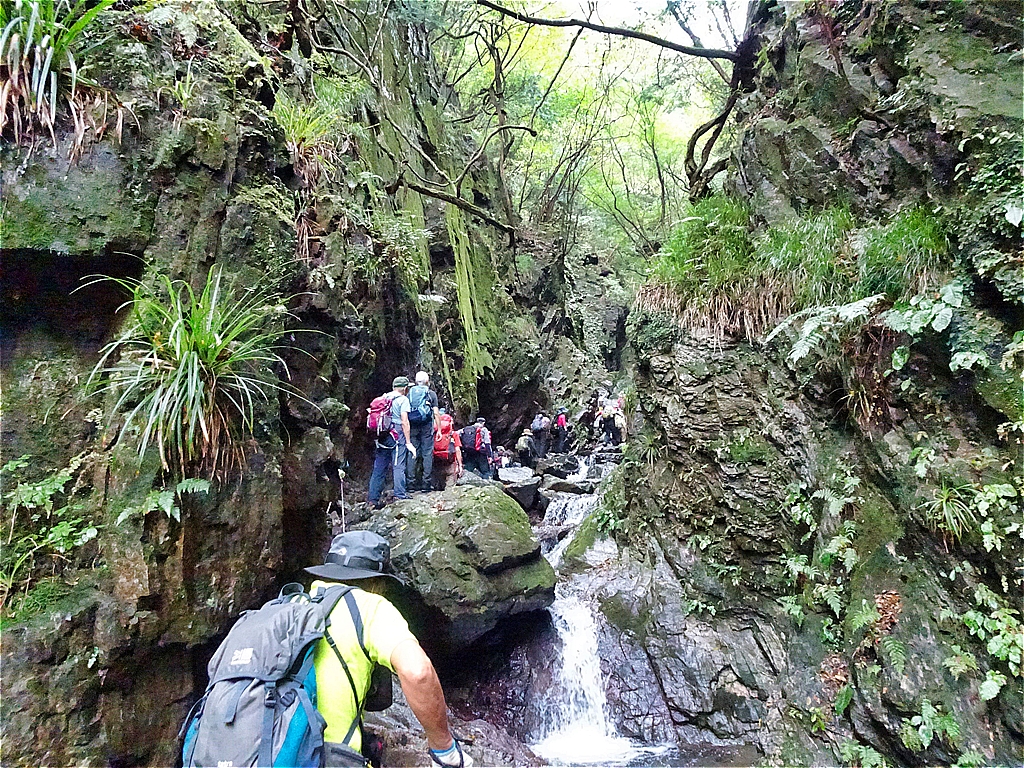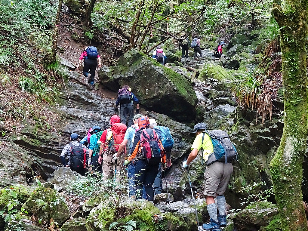 ~~~~~~~~~~~~~~~~~~~~~~~~~~リーダーコメント 緊急事態宣言解除により、2か月ぶりの山行を実施です。 沢沿いの登りは、前日の雨天で沢の水量が増し、又、濡れた岩場は滑り易く、苦戦しましたが、皆、スリル満点で楽しかった様です。 山中は、老若男女問わず、多くの登山者で賑わって居ました。 皆さん、無事に下山でき、お疲れさまでした。 |