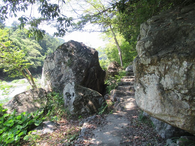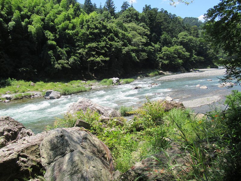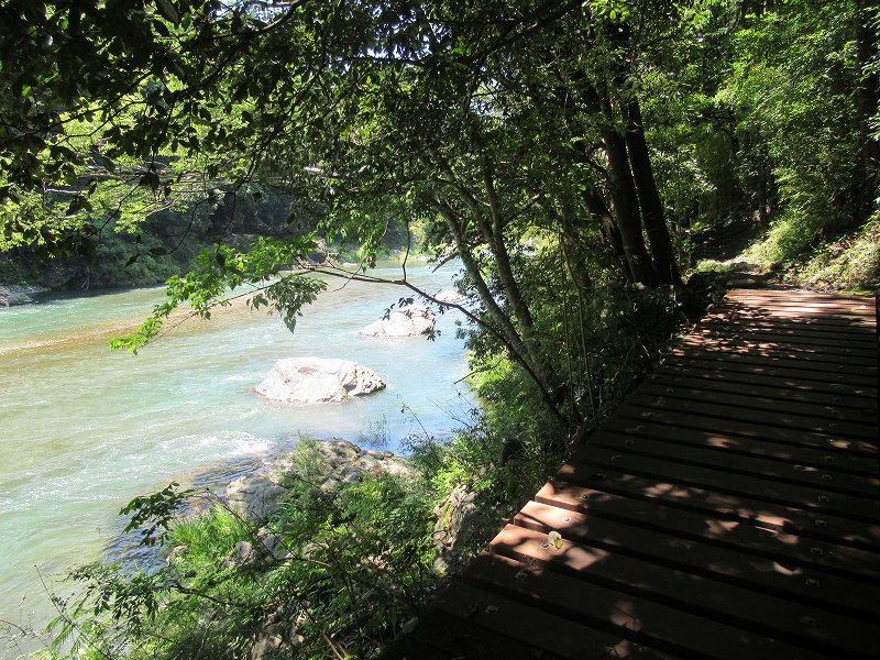 御岳渓谷は多摩川に沿って遊歩道が整備されています。涼し気な渓谷美を見ながら散策しました。