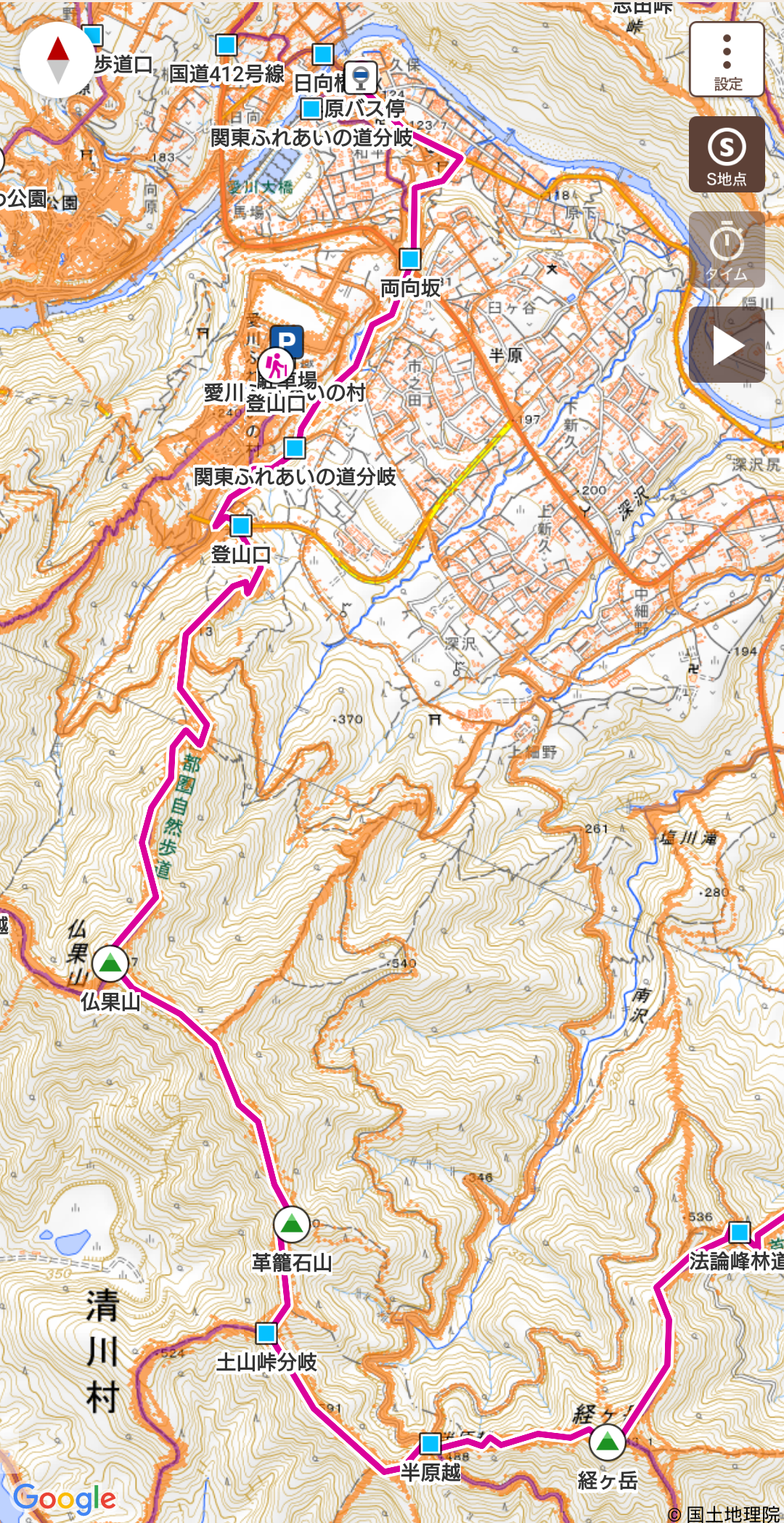 12:50半原越12:55ー革籠石山13:49ー14:45仏果山14:58ー16:40半原バス停