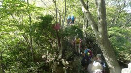 会山行中止が解除された最初の山行であったからか集合時は嬉々にぎやか、名物のヒルの