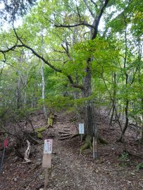 落ち葉で歩きやすい路です、見晴らし小屋の脇を通り山頂へ向かいます