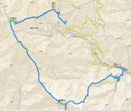 ▼コース :登山口09:15→9:45鞘口峠→10:25見晴小屋→10:50東峰→11:00中央峰(~昼食11:30)→12:20クメケタワ→12:45槇寄山→13:30大平分岐→14:15数馬バス(解散)