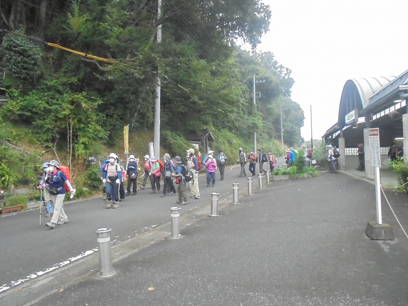 竹沢駅:リーダー挨拶 コロナ対策、岩場鎖等安全注意お願い。