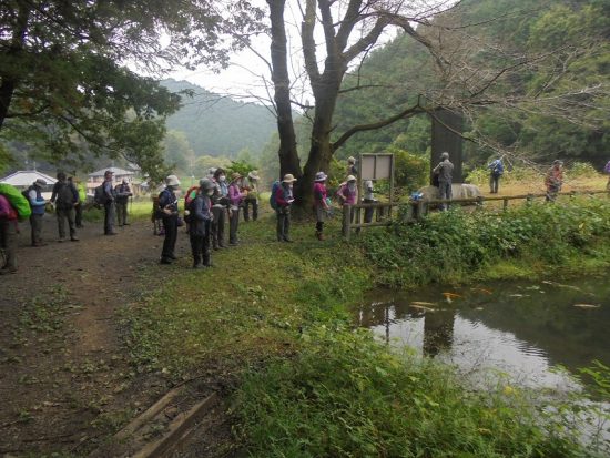 登山口の天王池(錦鯉数多く)