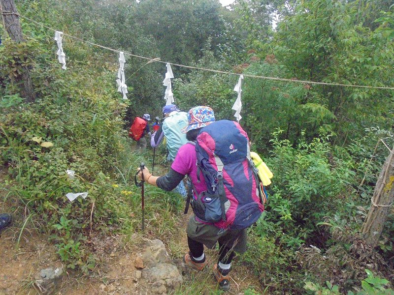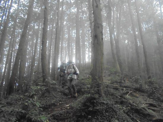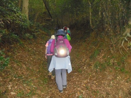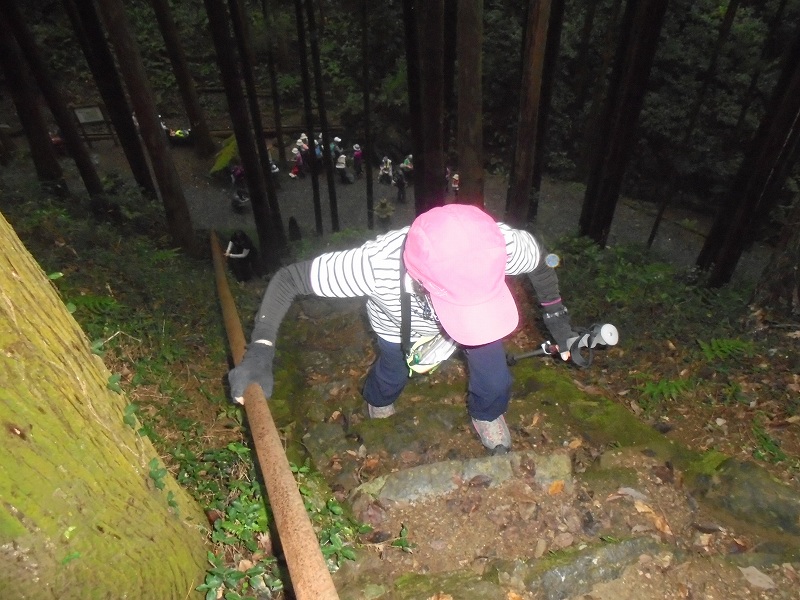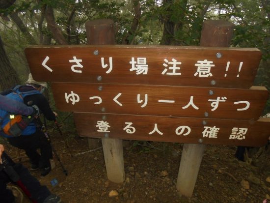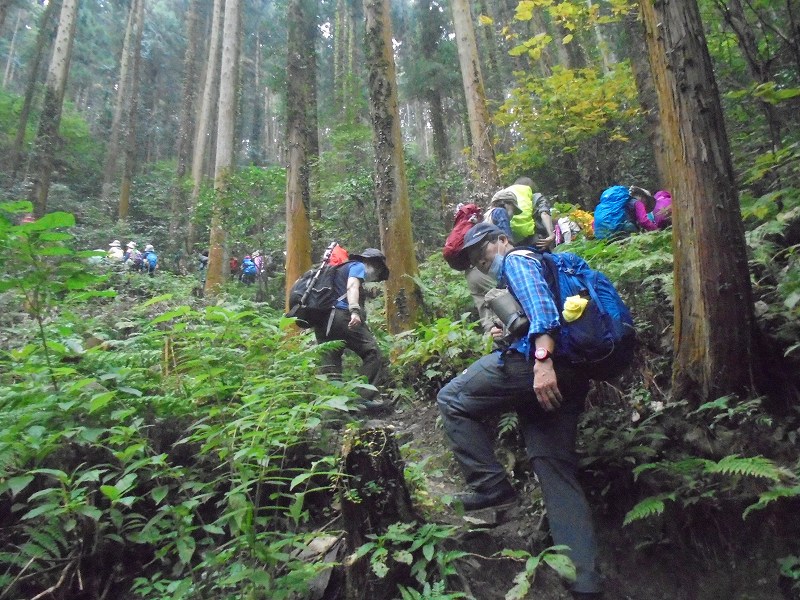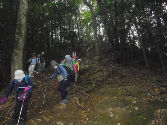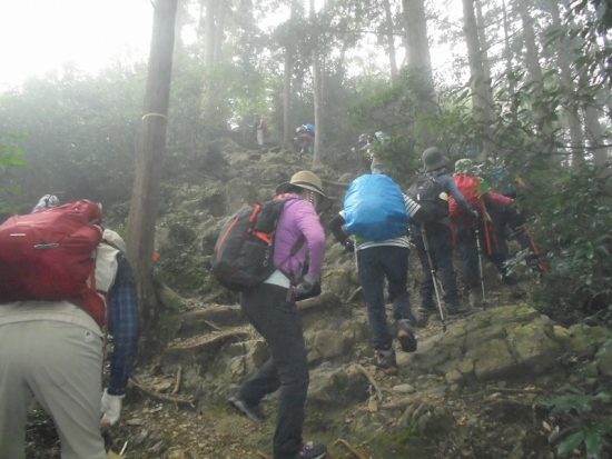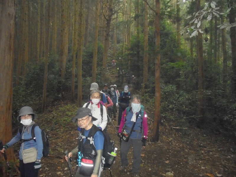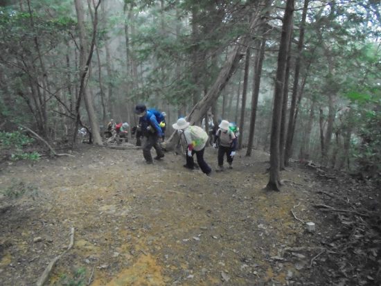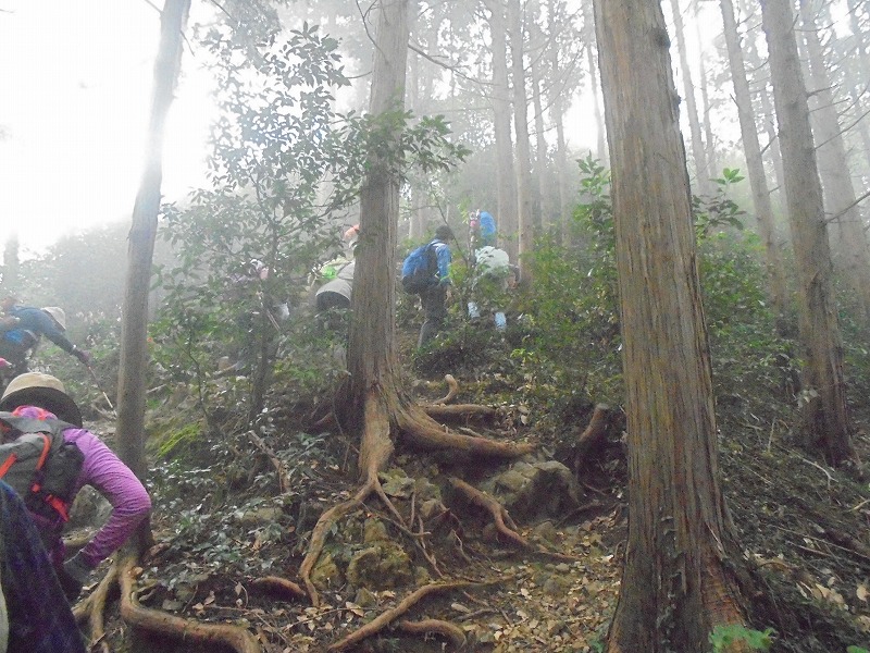 官の倉山:霧の中最後の上り、標高344mの低山ですが、行程は変化に富み歩きごたえが