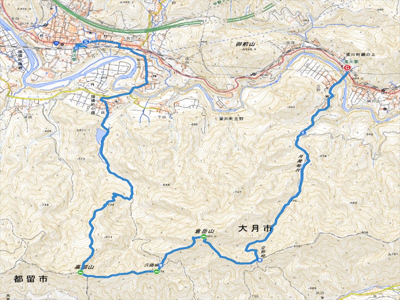 ▼歩程:鳥沢駅9:00→小篠貯水地9:40→仙人小屋跡11:00→高畑山11:30〜12:00→穴路峠12:30→倉岳山13:10→立野峠13:50→柳川駅15:30(解散)
