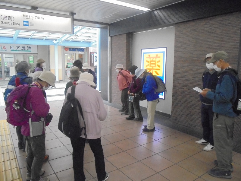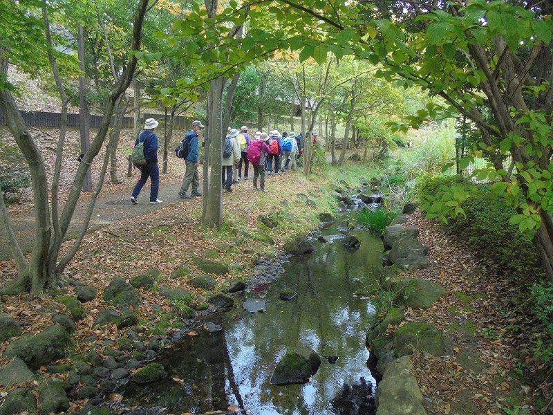 駅10:00:→せせらぎ緑道10:20→蓮池寺公園10:40→長池公園(休憩)11:20→月見公園(昼食)