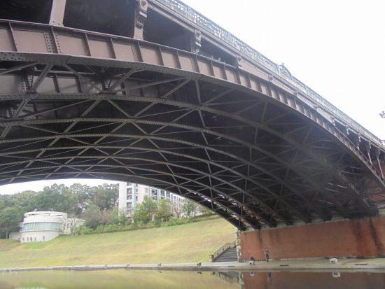 この長池橋はかっての四谷見附橋、1913年大正2年に完成、上路式鋼製アーチ橋です。