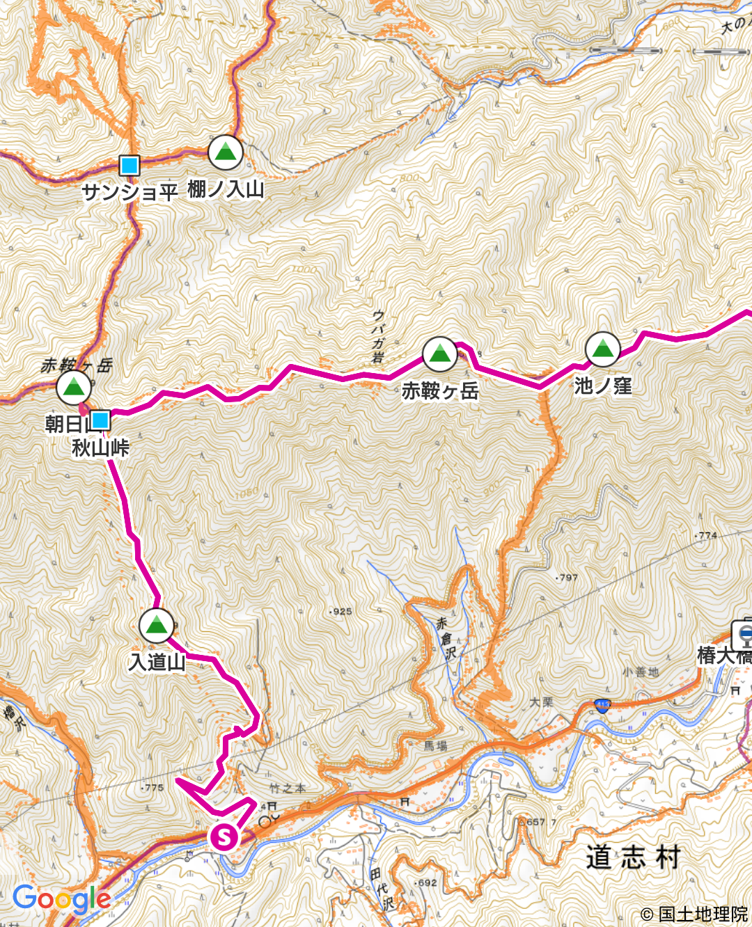 民宿(北の勢堂)7:38-(宿の車)-7:46竹の本7:55ー9:00入道山9:12ー秋山峠