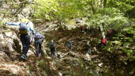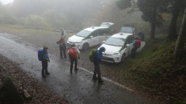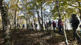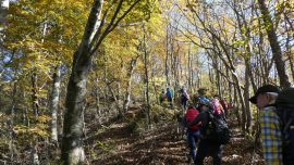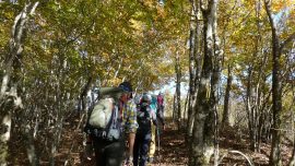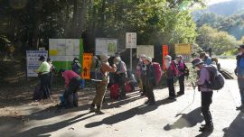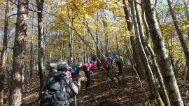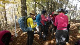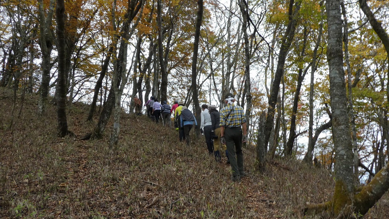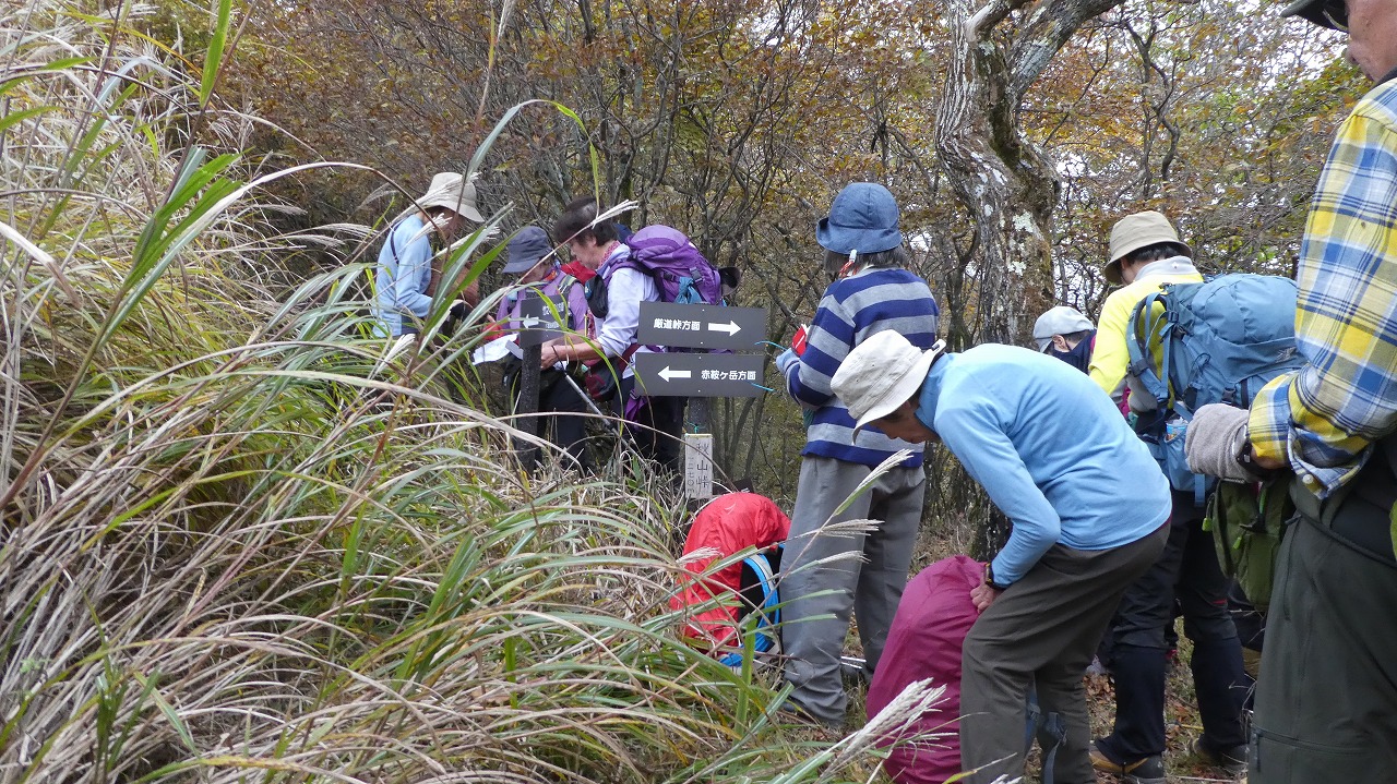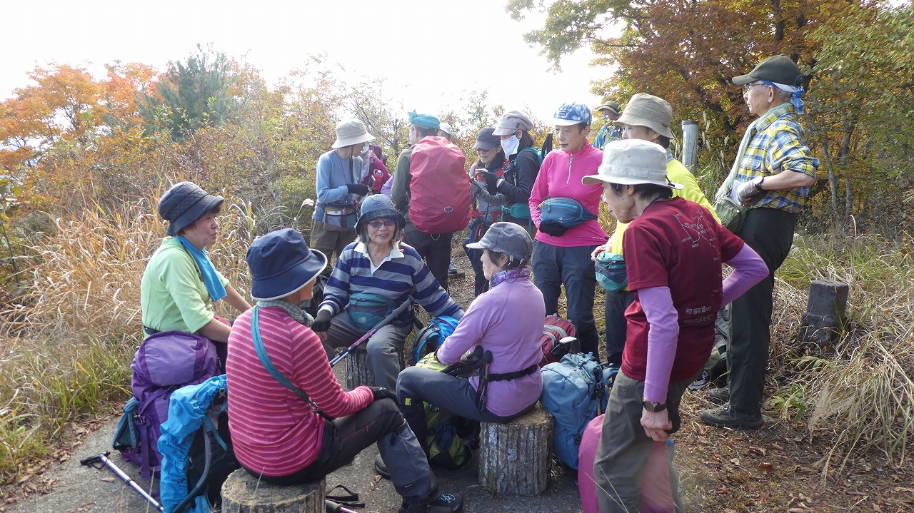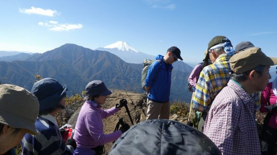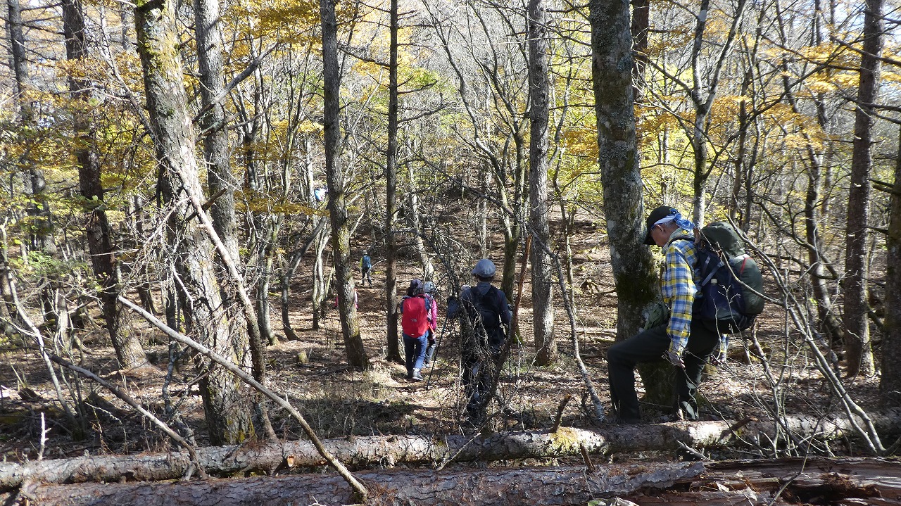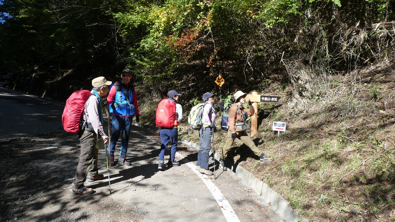 山川リーダー、スタッフの皆様、大変お世話になりました。 道志山稜の山々は、年々バス便が削減され、マイカー山行でなければ行けない山が増えてきています。今回は個人では敬遠しがちなバス便なしの山稜を案内していただきました。初日は取り付き点からいきなりの急登、枯れ沢のゴロゴロ斜面、手を使っての岩場、、、楽しませていただきました。そして大パノラマんの絶景のご褒美!!2日目も秋山峠まで一気に登り上げ、あとは静かな稜線歩き。雨は降りはじめましたが、紅葉した木々に霧がまといつき幻想とした山稜を歩けました。巌道峠に降りるとタクシーが待っていて、上野原駅に降りると8分後に東京行きの快速が到着。なんとナイスな時間配分にびっくりです。楽しい山行をありがとうございました。