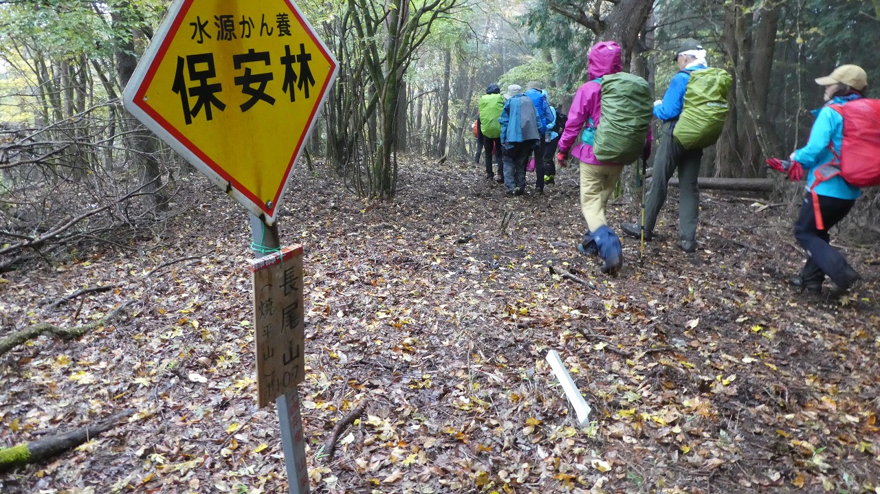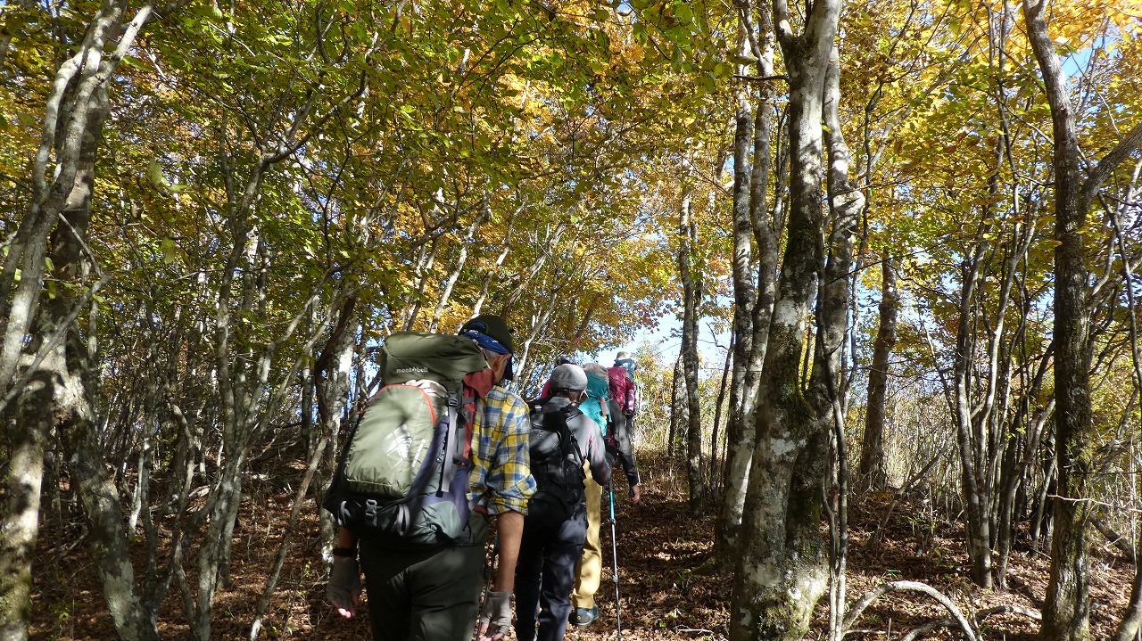 葉もバッチリで晴天ならさぞ気持ちいい尾根歩きが出来ると期待していたのに、あいにくの雨と