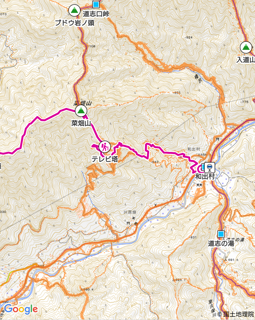 13:23水喰いノ頭13:33ー14:08菜畑山14:18ーテレビ中継塔14:39ー15:34