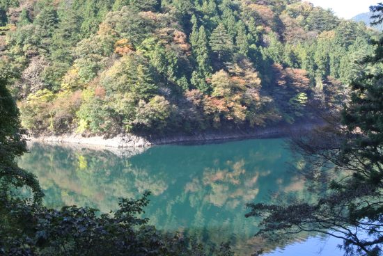 広葉樹が色付き始めた奥多摩湖畔
