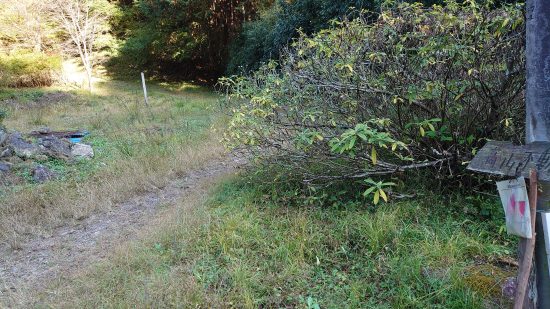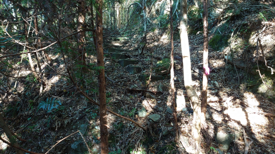 白山神社の裏に回り林道を上っていくと左にコンクリの階段が現れるので上って行く。