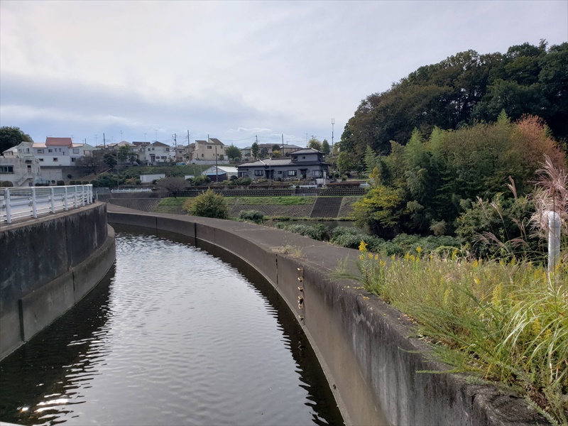 下小池橋で右岸へ 目久尻川からかきあがり坂を上る