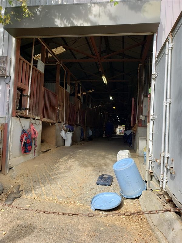台地に乗馬クラブ 隣に建つ厩舎馬の顔