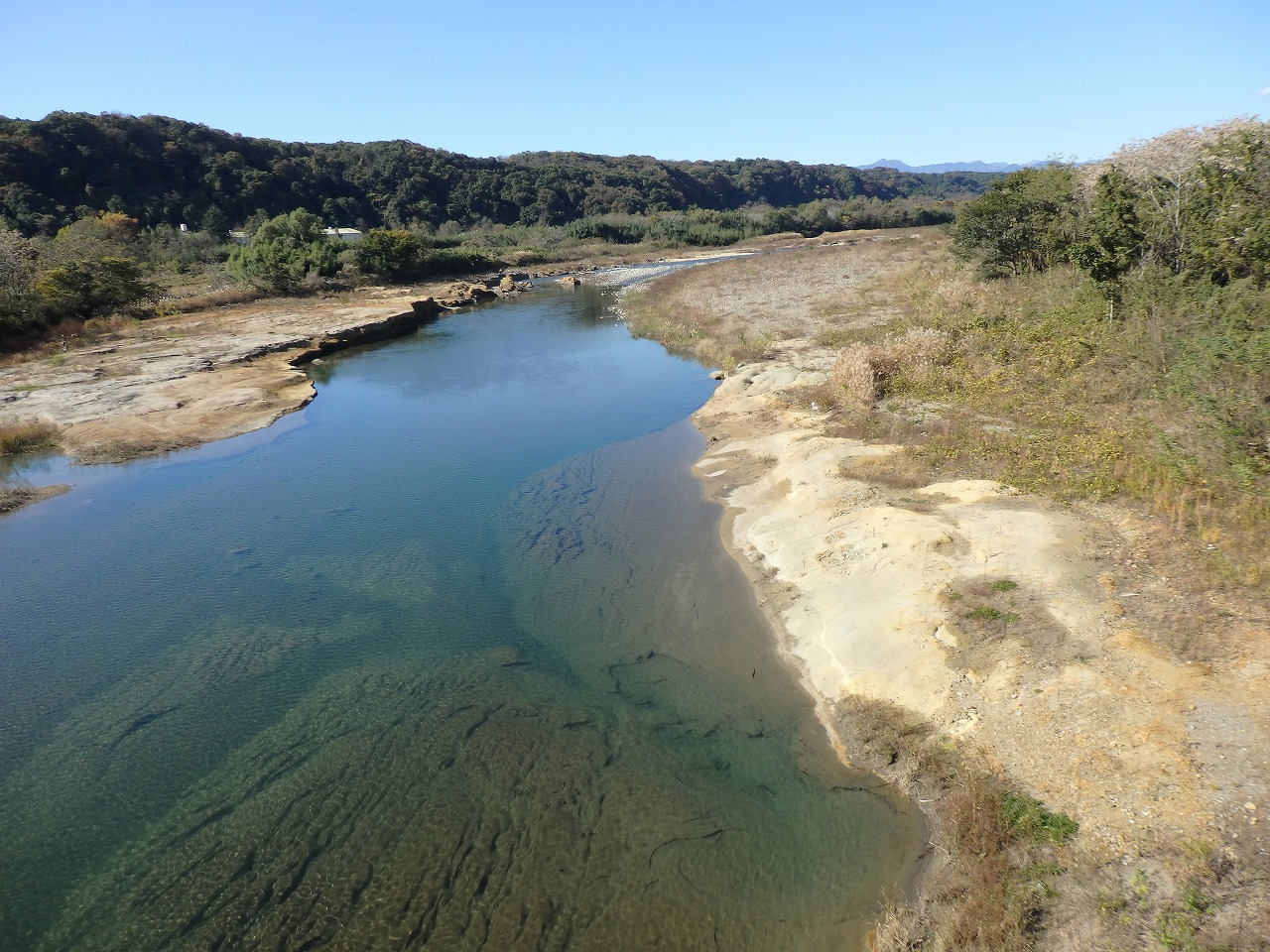 多摩川と遠くに奥多摩の山々