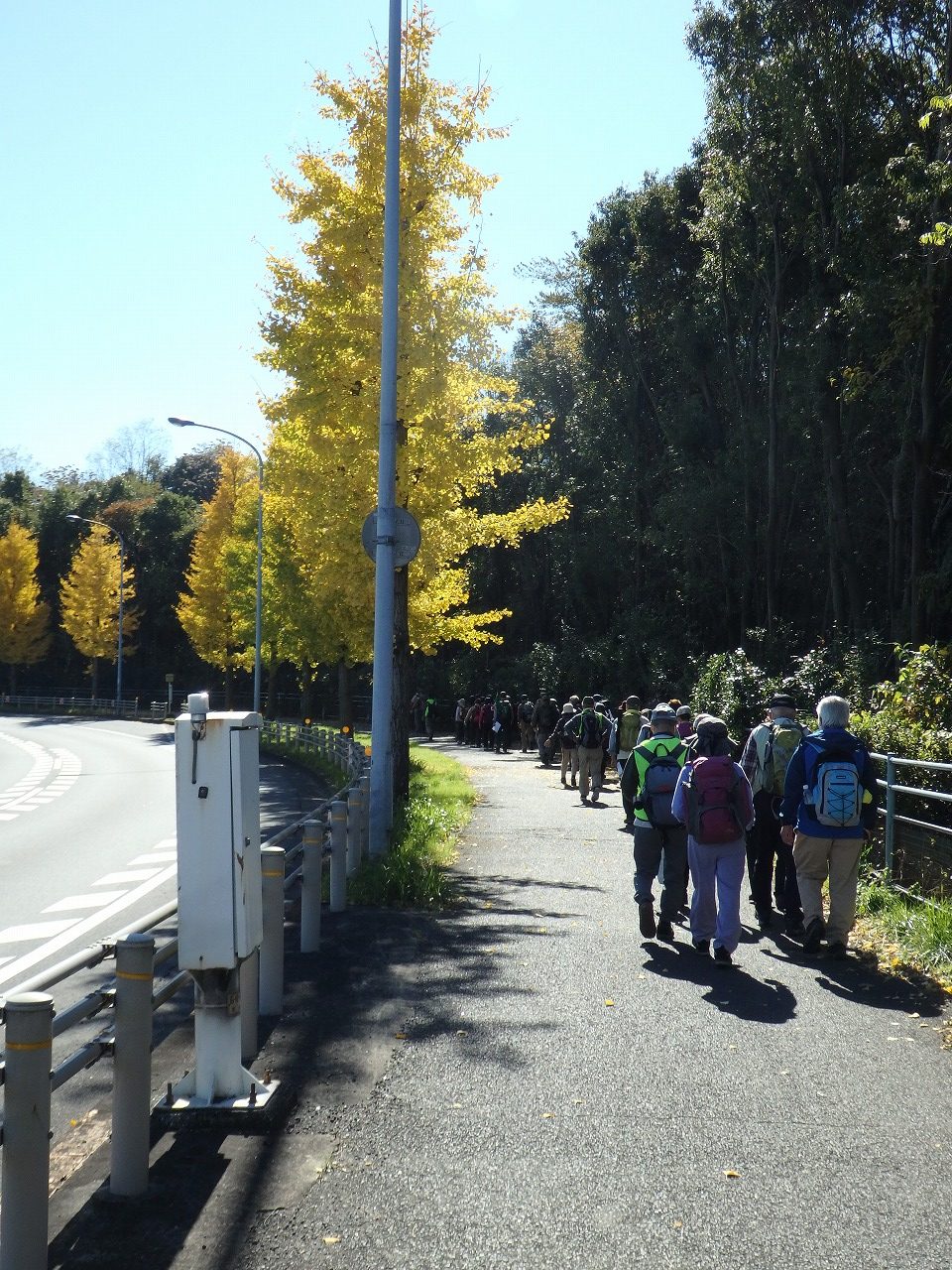銀杏並木の横を歩行