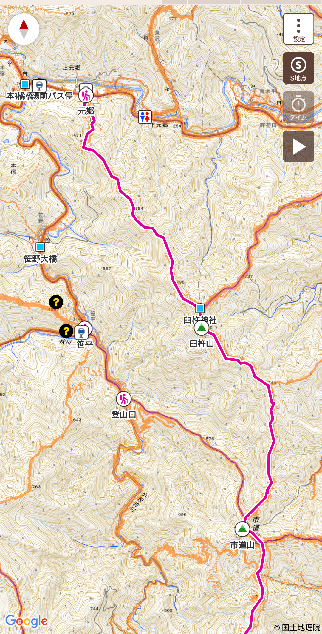醍醐丸10:26ー11:55市道山(昼食)12:33ー14:05臼杵山14:15ー15:32元郷バス停
